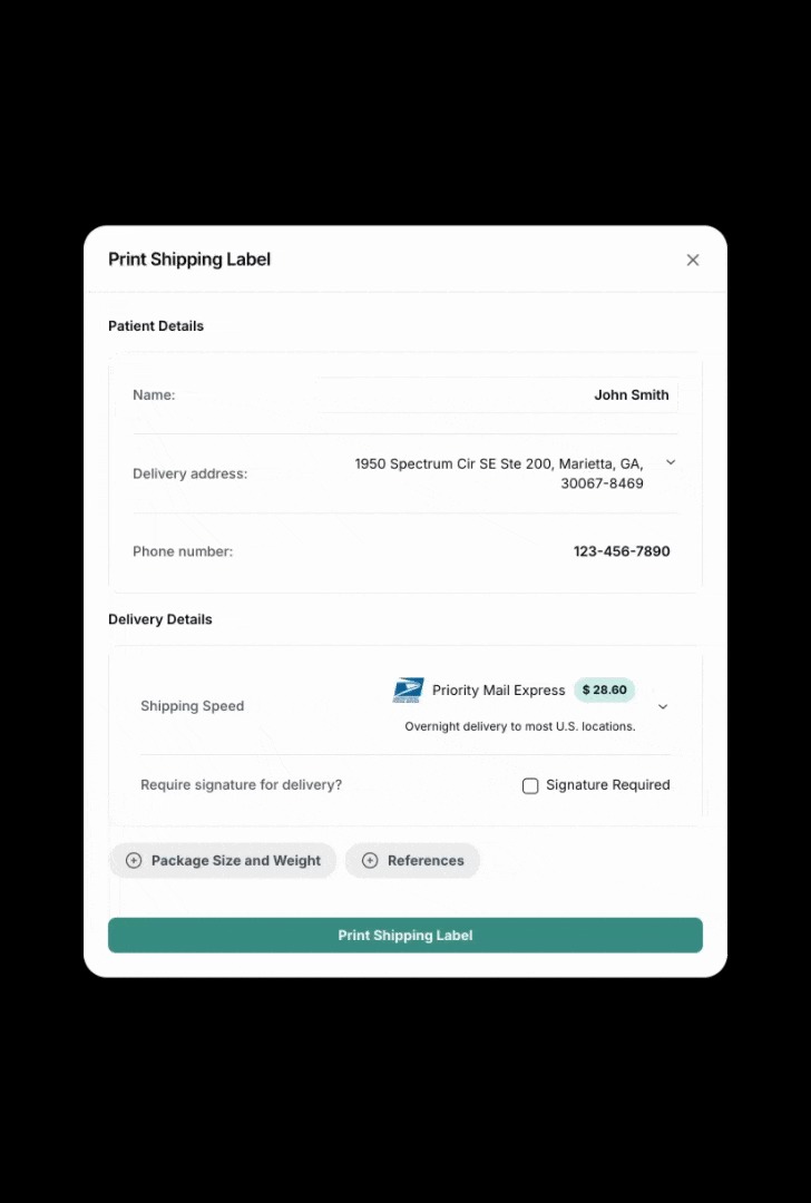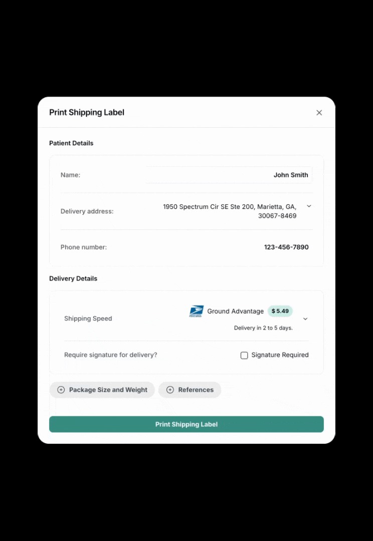 Meeting patients where they are… includes robust home delivery… Users can now enter package weight and dimensions directly when creating a shipping label…