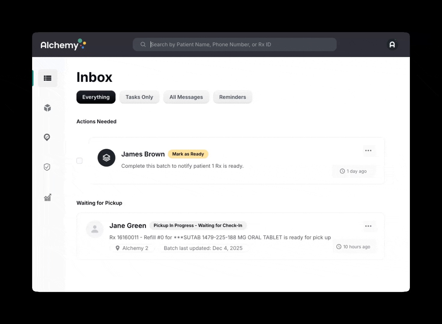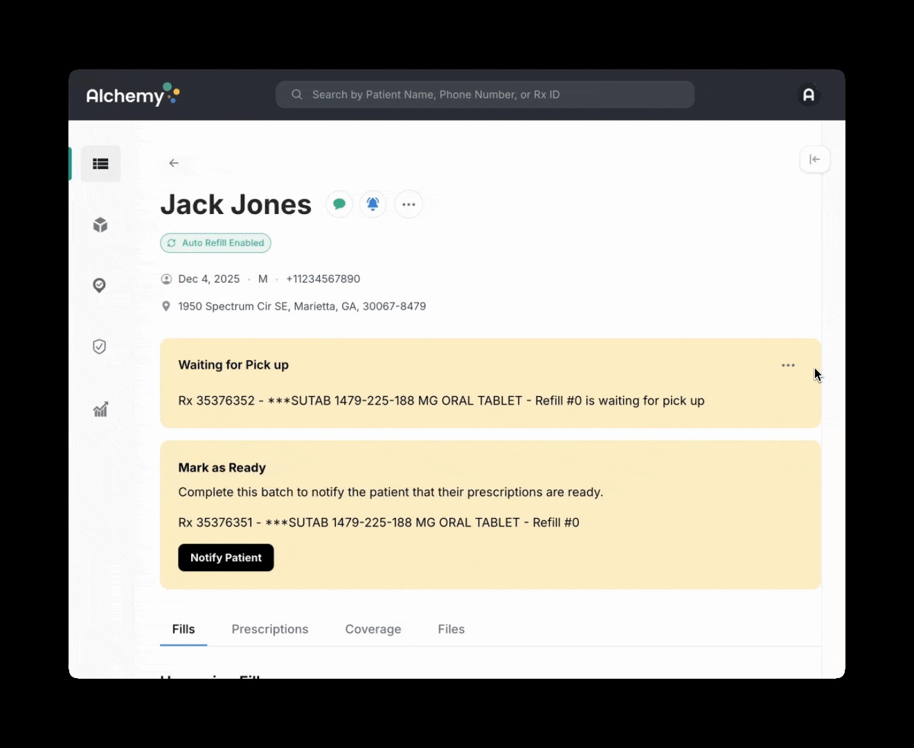 Search by first/last name, phone number, RX number… This series may be over, but we never stop shipping software at Alchemy.